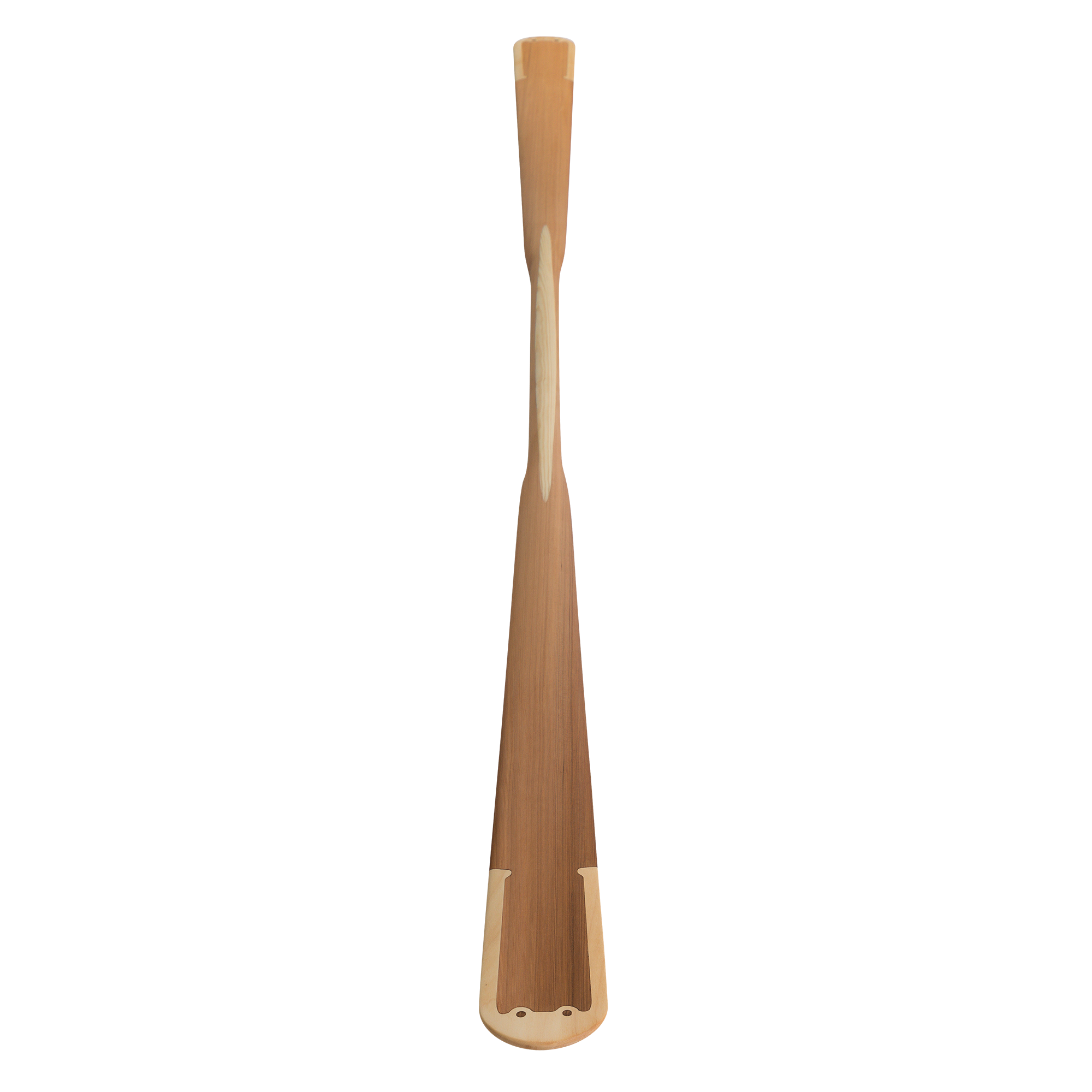 Greenland paddle NANOOK TIP is based on the shape and size of a traditional west-greenland paddle. It has mild “shoulders” on transition from loom (shaft) to blades. Blade tips are round and as wide as the blade. Out standard material is western red cedar (Thuja plicata) – lightweight and beautiful wood, which generally does not rot. Pine strips on the loom is our “trade-mark” which adds stiffness to our paddles. As a finish, we oil the paddles with tungoil. Wooden paddle treated with oil feels very natural and warm in your hands. Good grip is guaranteed, even when the paddle is wet.